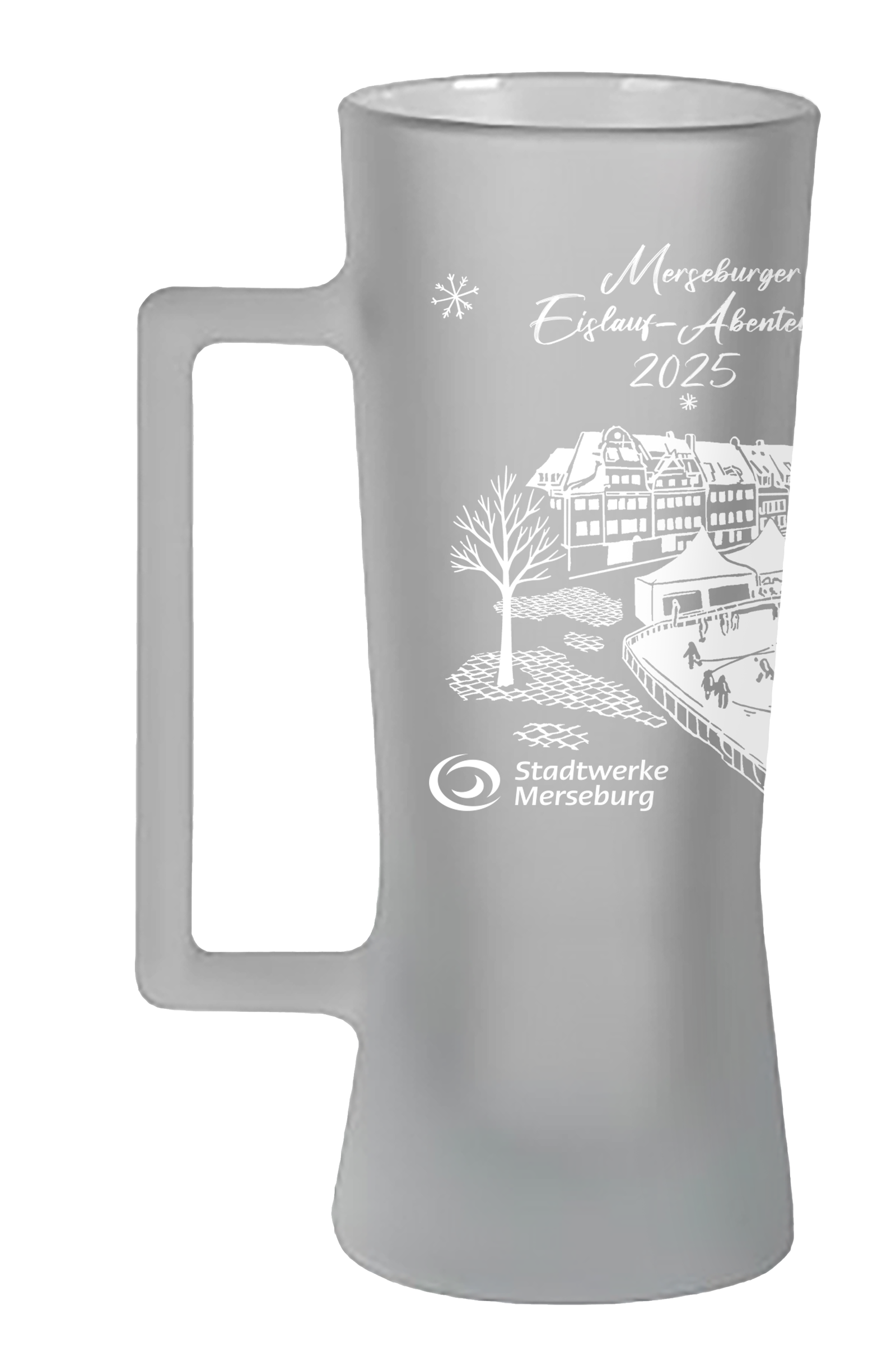 Die heiß begehrten Glühweingläser des Merseburger Eislauf-Abenteuers sind auch dieses Jahr wieder an der Eisbahn und im Kundenzentrum der Stadtwerke Merseburg verfügbar – jetzt mit brandneuem Motivdruck. Dieser zeigt den Merseburger Markt mit Eislaufbahn, Lichtern, Buden und winterlicher Stimmung.